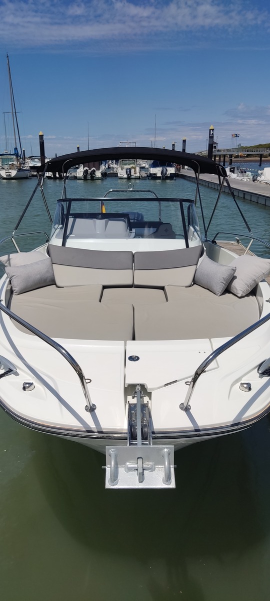 Es la referencia en embarcaciones del segmento de 8 mts. Con un estilo joven dinámico y deportivo. Dispone de amplia bañera con comedor y gran solárium en proa, además de un gran bimini, que hace de este barco el prefecto aliado para disfrutar del día mas completo en el mar.